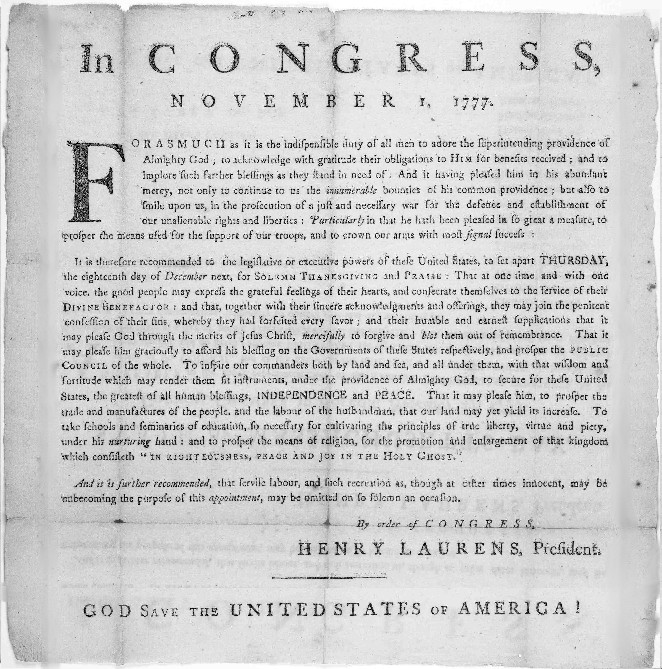 November 1, 1777 Thanksgiving Proclamation - Library of Congress,